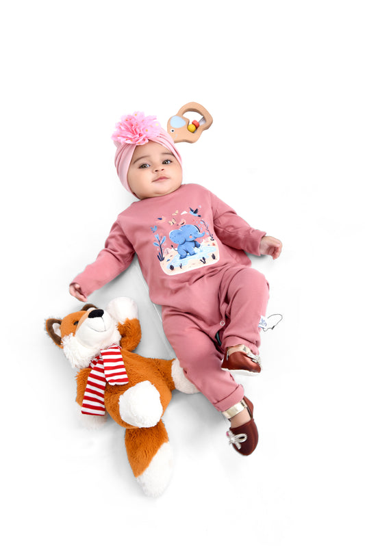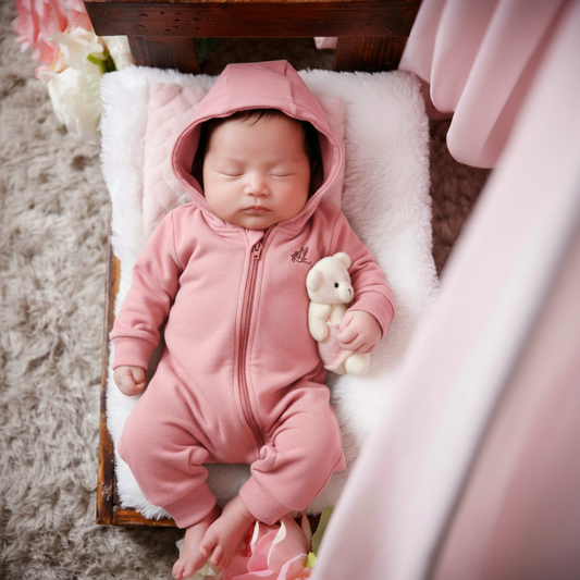 Baby Girl Winter Pink Hooded Romper – Warm Cotton Hooded Romper for Infant