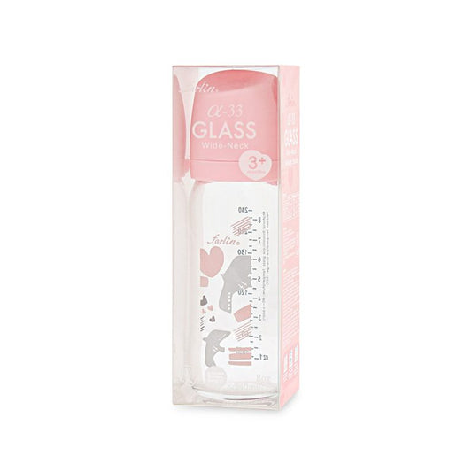 Farlin Wide-Neck Glass Feeding Bottle 240ml – Pink