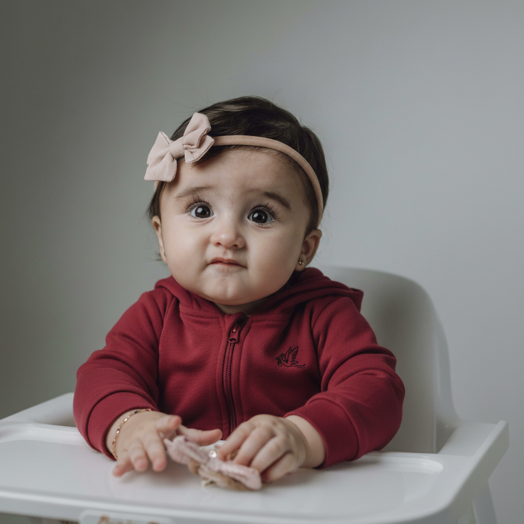 Give your baby the ultimate in warmth and style with this maroon hooded romper – a must-have winter essential combining quality, comfort, and elegance.